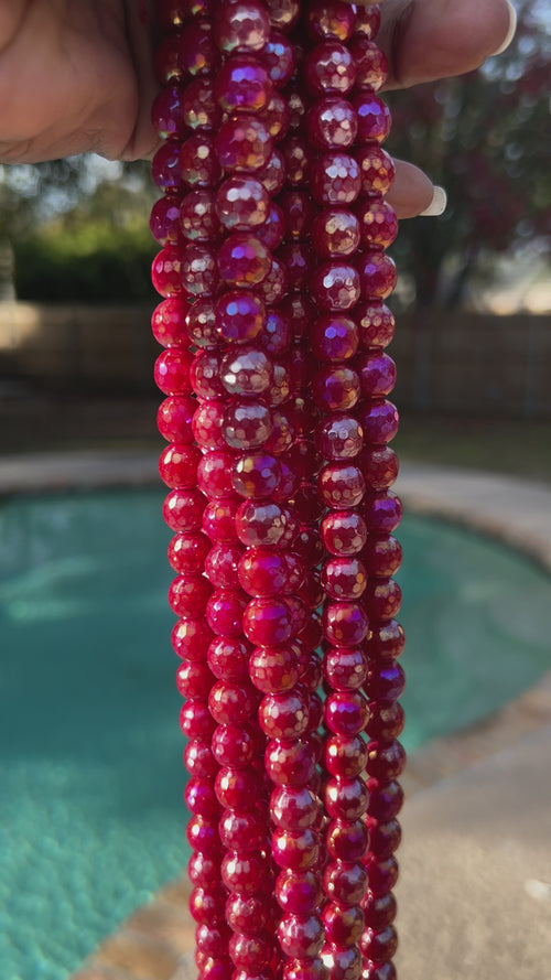 - 10mm Faceted Electroplated Red Agate (Plated). High-quality beads, round beads with highly polished, faceted, shiny surfaces, Excellent Polishing.