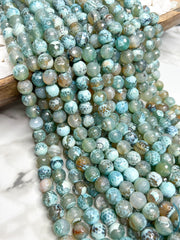 12mm Faceted Fire Agate | Faceted Powder Blue Agate Gemstone Beads | DIY Jewelry Making | 15" Strand 32 Beads per Strand | One Strand