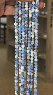 6mm Faceted Blue and White Fire Agate. 15"strand