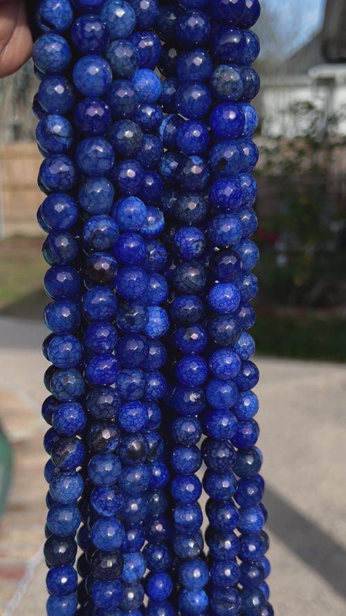 12mm Faceted Blue Crackle Agate | Faceted Blue Agate | DIY Jewelry Making | 15" Strand 32 Beads per Strand