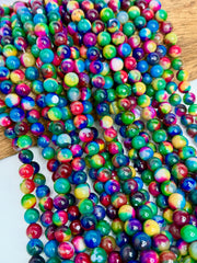 Brighten your bead collection with these stunning 10mm rainbow multicolor agate gemstone beads. Each smooth round bead is a swirl of vibrant pinks, purples, blues, greens, yellows, and reds—perfect for bold, colorful jewelry designs. These high-gloss agate beads are ideal for bracelets, necklaces, earrings, and DIY beading projects. Sold by the strand, each measure 15 inches and contains approximately 38–40 beads. A must-have for beaders and jewelry designers looking to add playful, eye-catching elements to their creations.