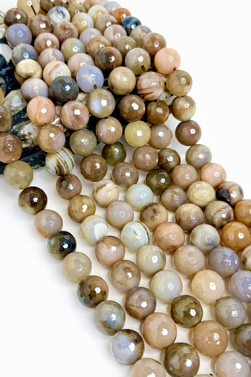 View full details16mm Faceted Agate Gemstone Beads – Natural Neutral Tone Round Stone Beads – Large Statement 15.5” Strand