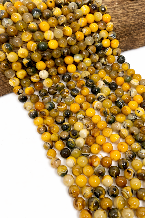 View full details10mm Smooth Yellow Agate Round Beads | Natural Banded Agate Gemstone Beads for Jewelry Making | 15” Strand