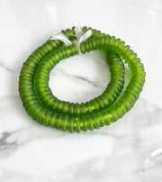 Beautiful African Fair Trade recycled glass rondelle beads! These transparent colored donut recycled glass beads are made in Ghana by the Krobo mountain tribe using a unique glass making technique that is been used for centuries.