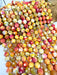 Bring the warmth of sunshine and fire to your jewelry designs with these 14mm Smooth Matte Agate Gemstone Beads. Each 15” strand includes approximately 28 beads in stunning shades of yellow, orange, red, and cream — creating a radiant, earthy color palette reminiscent of a glowing sunset.