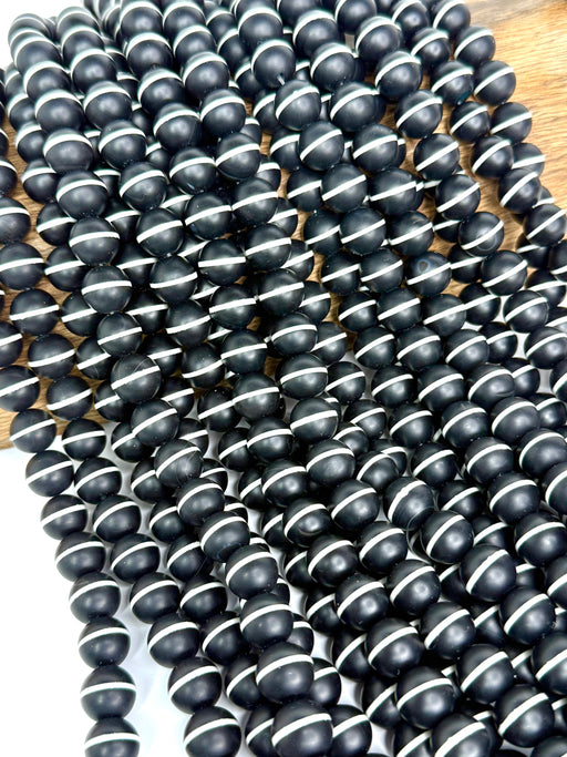 View full details12mm Smooth Tibetan Agate Gemstone Beads | White Line Tibetan Agate | Black & White | DIY Gemstone Jewelry | 15” Strand