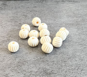 10mm Cream Carved Bone Beads. Sod individually or per strand. Approximately 46 beads per strand and 12 beads per pack. 15” Strand