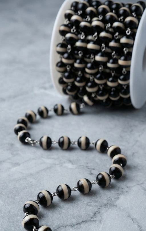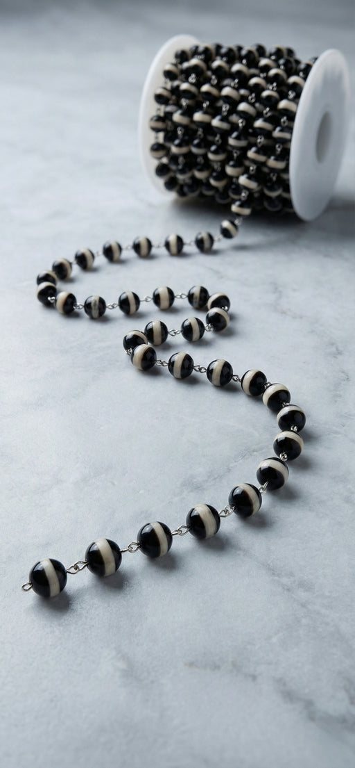 Alter Ego Beading Supplies10mm Faceted Tibetan Agate Gemstone Chain on sturdy silver stainless steel wire This listing is for 1 foot of chain.