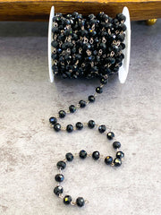 5x8mm Black Faceted Crystal Rosary Chain with Silver Wire