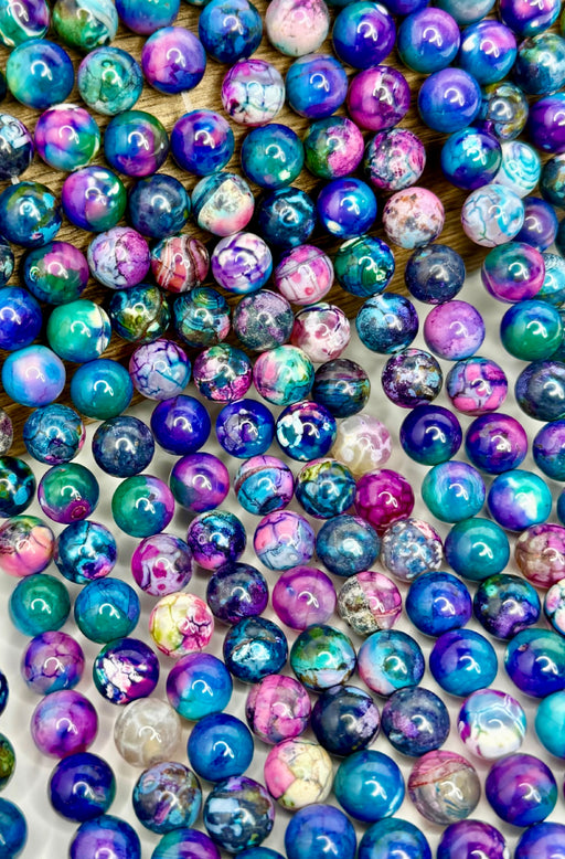 Alter Ego Beading SuppliesAdd vibrant energy to your designs with these 8mm multicolor agate gemstone beads. Each smooth round bead showcases a unique swirl of purples, pink...