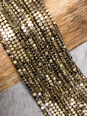 4x4mm Cubed Hematite. These would be a cute addition to any design. Available in two finishes: Gunmetal and Pyrite Color Hematite. 15" strand