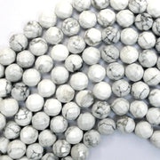 Natural White Howlite Round Beads | Faceted White Howlite | DIY Jewelry Making | 14mm Faceted White Howlite | 10mm Smooth White Howlite | 15" Strand (14mm Faceted)