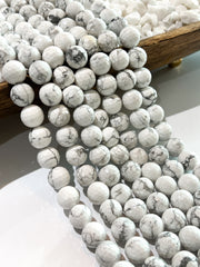 - 10mm Smooth White Howlite. Hole Dia: 0.8mm,1 Strand (15 inches / Strand; 37 pcs / Strand)