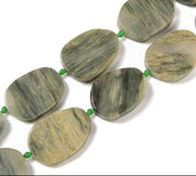 9x40mm Green Line Jasper Flat Oval Beads