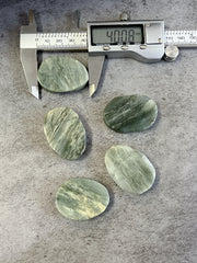 Natural Green Line Jasper Flat Oval Beads