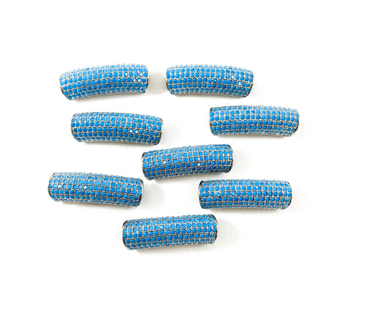 View full details30mm Silver and Turquoise Crystals Micro Pave’ Spacer Bar | 10mm Micro Pave’ Wheel Spacer Bead | Curved Tube Bead | DIY Jewelry Designs | One Piece