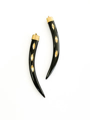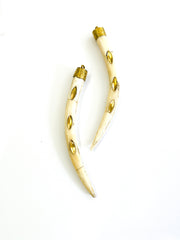 5" (132mm and 12mm wide) Bone and Horn Tusk Pendants with Brass Inlay and Cap. The Black Tusk Pendant is Bone and the Cream Tusk Pendant is Horn.