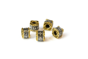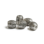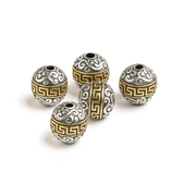 Add a touch of luxurious global beads to your next jewelry design with these stunning gold and silver etched metal beads. Crafted in a Tibetan-inspired style, each bead features intricate raised detailing, a warm antique finish, and a beautifully balanced two-tone design that elevates any project.