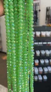 8x10mm Faceted Electroplated Lime Green Crystal Rondelles. 15” Strand. Approximately 53 beads per strand