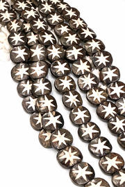 African Batik Bone Beads | Flat Hand-Carved Beads | Assorted Colors & Patterns | 20mm+ | 5-Pieces or By the Strand