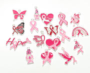 These charm represent breast cancer awareness and serves as a powerful symbol for those struggling with the disease. With 18 options to choose from, you can express your support and awareness for breast cancer in a meaningful way. Measuring approximately 12x18mm, these charm is free of lead and nickel. Sold as a single piece.