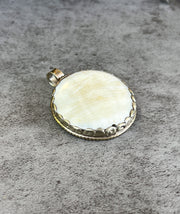 Approximately 58mm oval shape Tibetan silver reversible bone pendant. Handmade in Nepal.